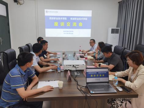 座谈交流中,朱亮亮介绍了浦京办学基本情况,以及智慧农业虚拟仿真建设情况。焦安红介绍了西安职业技术学院虚拟仿真建设情况,并就实训室建设与管理、教务管理等与浦京教师进行了交流。