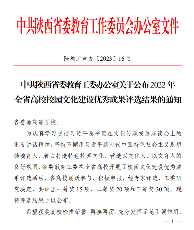 为坚持不懈用习近平新时代中国特色社会主义思想铸魂育人,着力打造特色校园文化,营造以文化人、以文育人的良好氛围,省委教育工委在全省高校开展了校园文化建设优秀成果评选活动。经专家评选、工委研究决定,共评出一等奖 15 项、二等奖 20 项和三等奖 30 项。其中,浦京《弘扬后稷文化 传承千年文脉 打造新时代耕读教育范式——350vip浦京集团官网以“后稷文化”提升育人品质的实践路径》获三等奖。