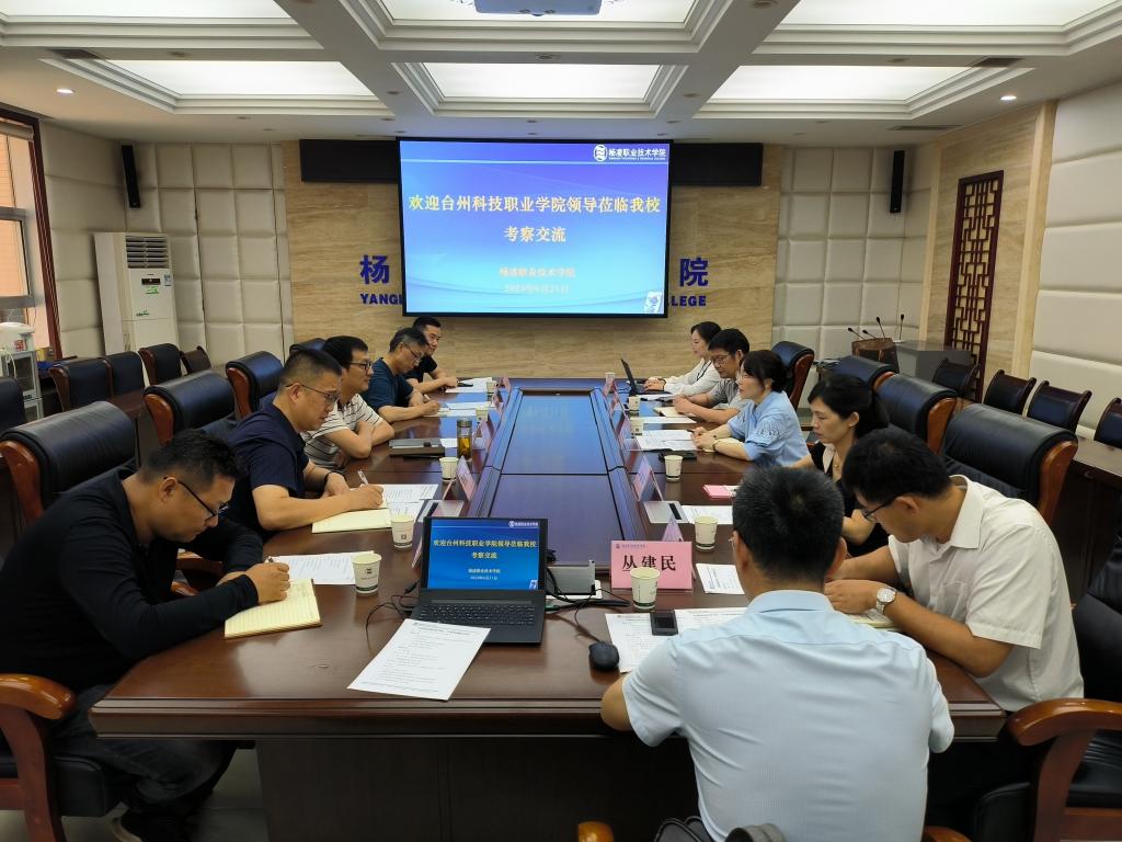 会上,蒋平江介绍了浦京“双高”建设、新校区建设及职业本科筹备等情况。陈丽婷对浦京各方面办学成就给予肯定,介绍了台州科技职业学院的发展历史和办学现状、师资队伍建设、国际合作交流以及智慧农业实训基地建设情况。双方围绕相互关心的话题和对口工作进行了深入交流。