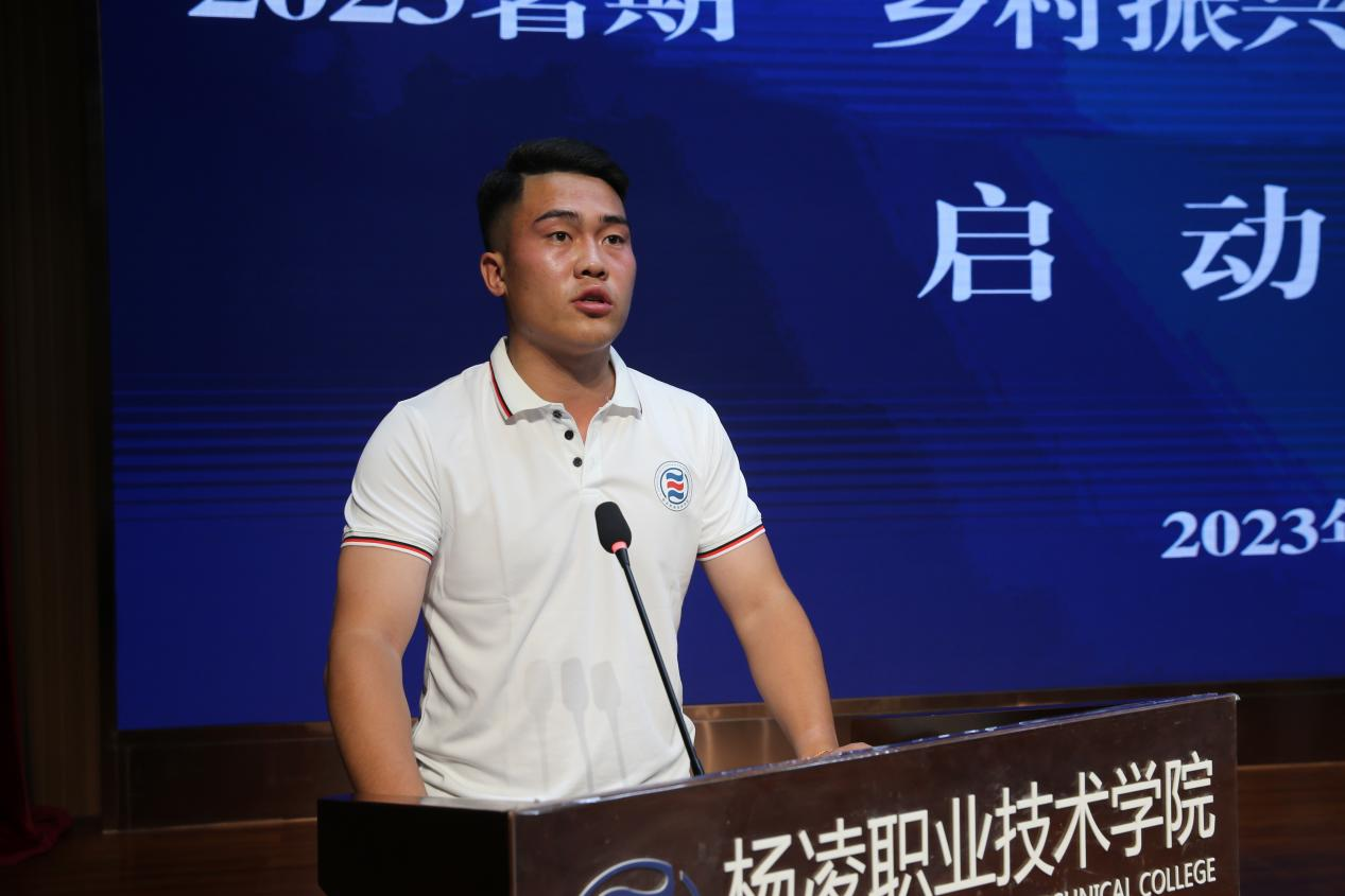 启动仪式上,副校长张朝晖对2023暑期“乡村振兴大课堂”文明实践活动进行了详细安排。服务队代表、生态环境工程学院党总支书记孙承俊,教师代表、陕西最美科技工作者马文哲教授,学生代表、生物工程学院李渝成分别作了表态发言。