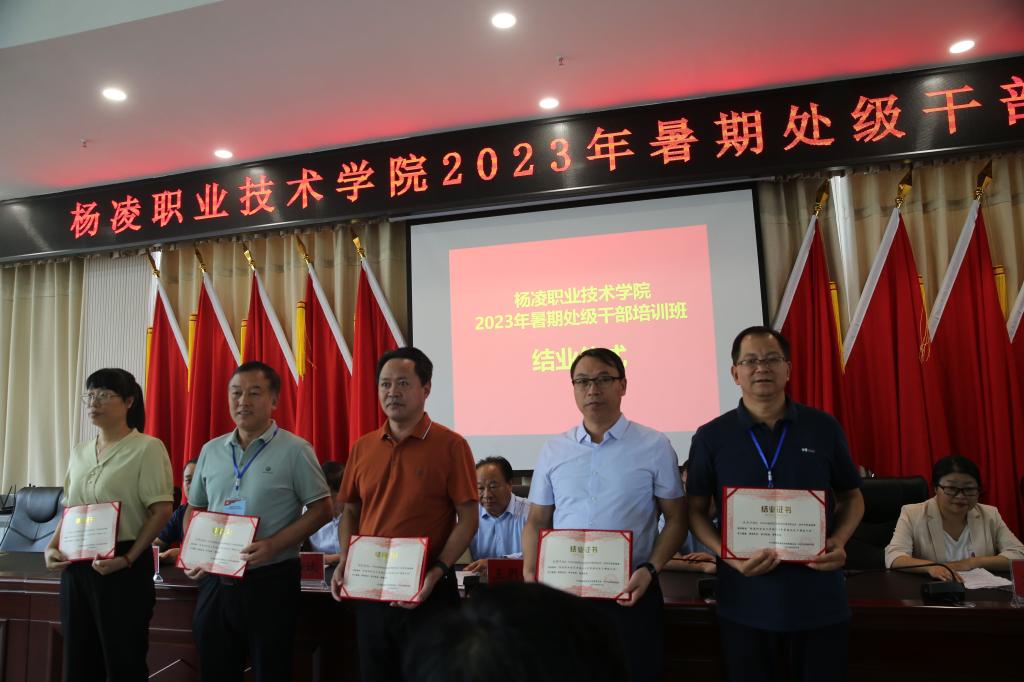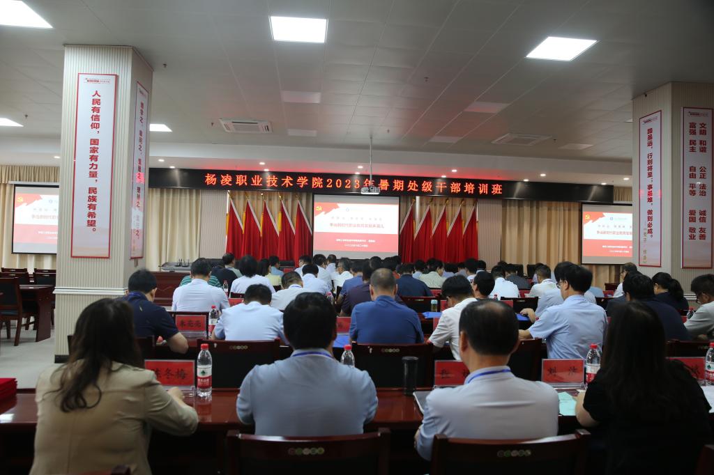 8月21日至24日,学校在凤县县委党校举办2023年暑期处级干部培训班。凤县县委书记张扬,县委副书记、党校校长严立章,副县长赵少宁;学校党委书记王周锁,党委副书记、纪委书记王勇胜,副校长祝战斌、蒋平江、胡俊鹏等出席培训班;学校60余名副处级以上干部参加培训。
