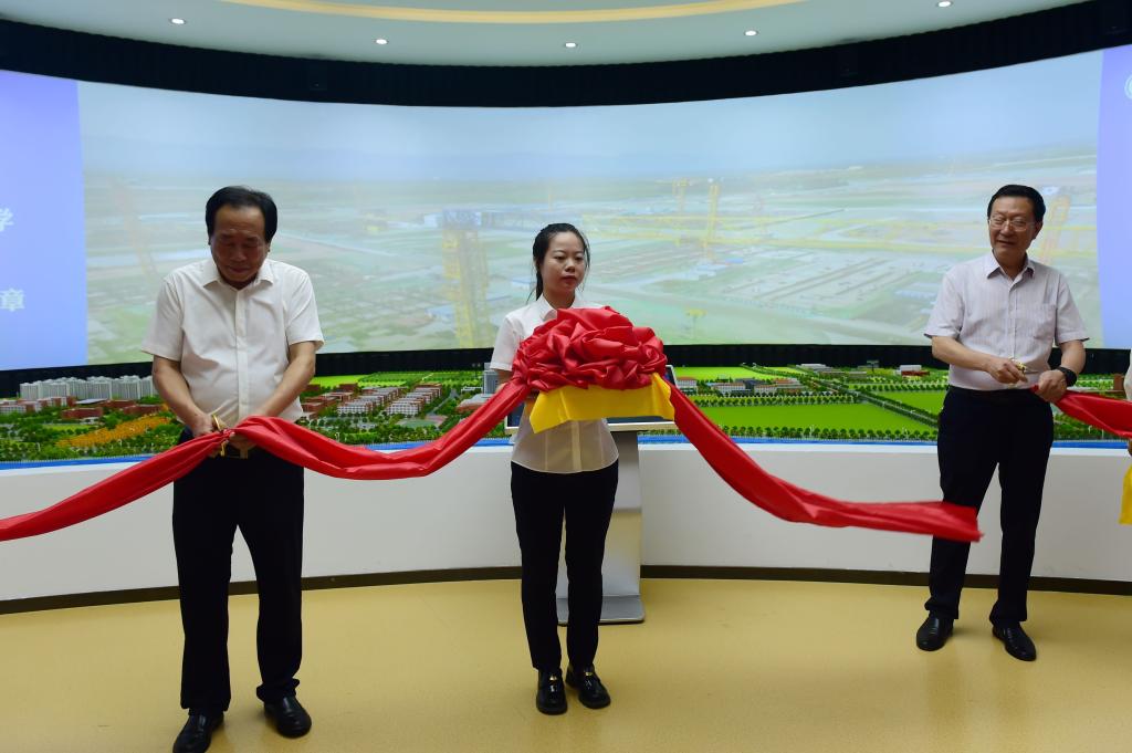 ▲8月2日,滨河校区建设项目沙盘剪彩仪式在校史馆举行。沙盘前期设计工作顺利结束,设置在校史馆的沙盘包含三校区校园规划、滨河校区整体规划及校外豆村农场;另一个沙盘设置于滨河校区指挥部,展示滨河校区校园规划布局情况。