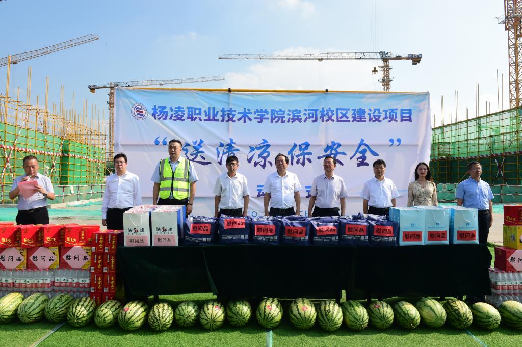 ▲8月2日,浦京滨河校区开展“送清凉 保安全”慰问活动。校领导班子成员和中建西北设计院相关领导共同为奋战在一线的工作人员送去防暑降温慰问品,并叮嘱广大施工人员要注意防暑降温,保重身体,推进滨河校区项目高质量建设,为学校科学发展、跨越发展做出新的贡献。