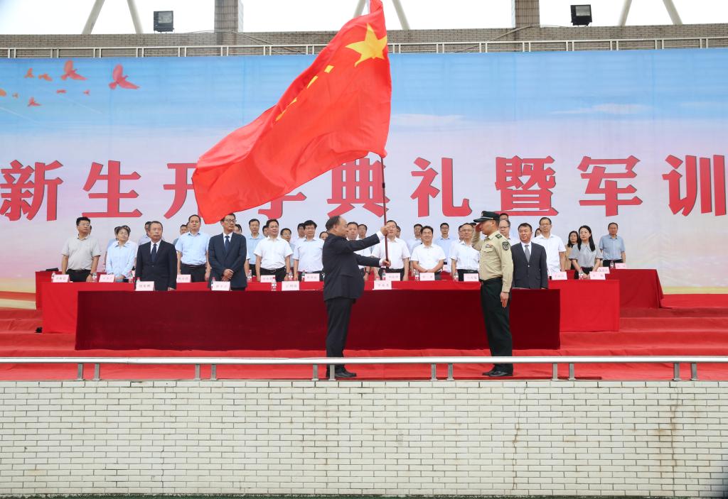 副校长蒋平江、胡俊鹏,省级以上优秀教师、教学名师、师德标兵、杰出人才、三级教授等教师代表,各二级学院、各处室负责同志,2023级新生,以及军训教官等近6000人参加开学典礼暨军训动员大会。