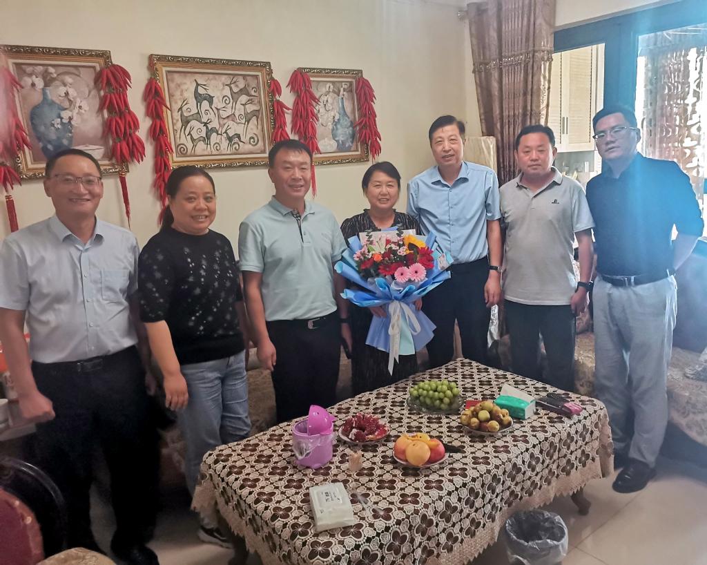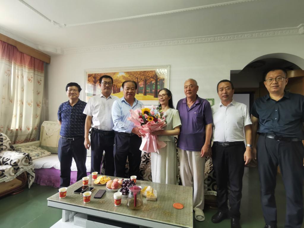 ---教师节前夕校领导看望慰问退休教师代表。9月7日上午,党委书记王周锁,党委副书记、纪委书记王勇胜,副校长祝战斌、蒋平江、胡俊鹏等走访慰问王耀勇、杨和平、刘愿英、陈亚萍、孙丙寅等退休教师代表,为他们送去学校的问候与关怀,并通过他们向退休教职工致以节日的祝福。慰问中,校领导们亲切询问了退休教职工的身体状况和生活情况,并向他们介绍了学校“双高”和新校区建设及当前各项事业发展情况。