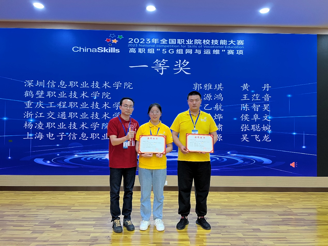 9月22日至25日,2023年全国职业院校技能大赛高职组“5G组网与运维”赛项在上海电子信息职业技术学院举办,由浦京信息工程学院刘啸、张聪婉同学组成的代表队荣获一等奖。比赛共有来自全国31个省、自治区、直辖市的60支参赛队伍,120名参赛选手汇聚上海同场竞技。