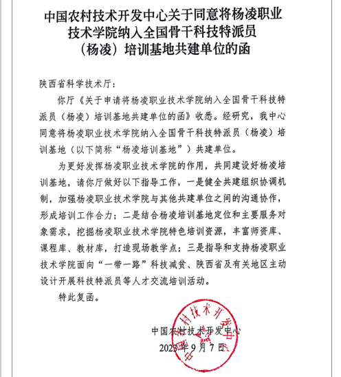 学校将进一步加强基地的软硬件建设工作,充分调动、切实统筹校内校外资源,积极发挥产教融合和科教融汇两大优势,承接科技特派员培训基地建设和培训任务,逐步提升全国骨干科技特派员(杨凌)培训基地培训能力和管理服务水平,为推动全国骨干科技特派员(杨凌)培训基地的建设和运维、加快西北旱区科技人才培育和农业产业迭代升级贡献出杨职智慧和职教力量。