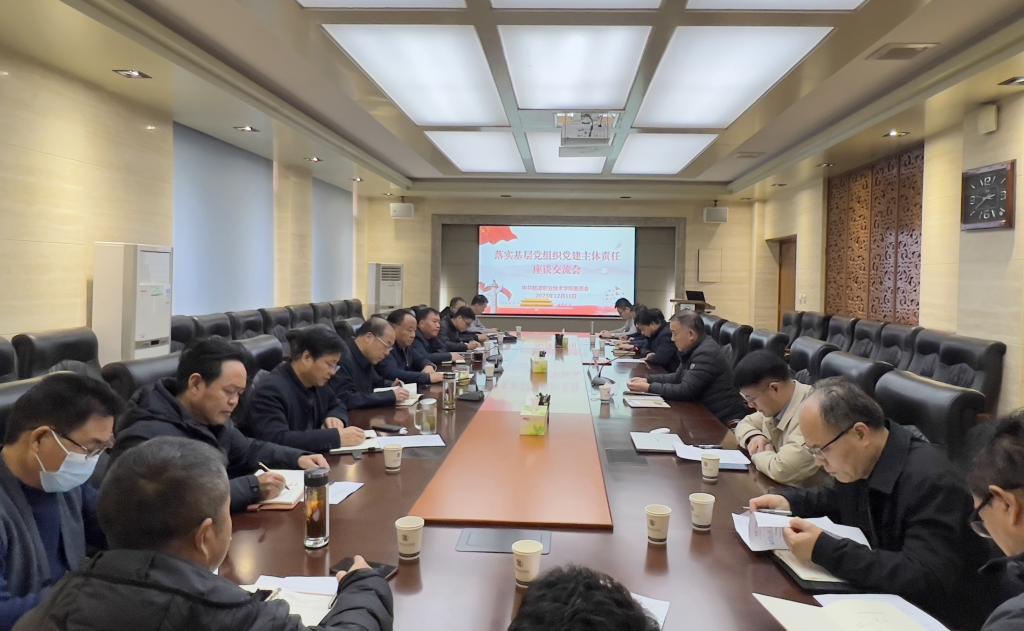 为持续深化学习贯彻习近平新时代中国特色社会主义思想主题教育,进一步压实基层党组织党建主体责任,提升“重党建”的思想意识和“抓党建”的能力水平,12月11日,学校召开落实基层党组织党建主体责任座谈交流会。党委书记王周锁、校长仲伟周、党委副书记、纪委书记王勇胜出席会议,18个党总支(直属党支部)书记参会。会议由王勇胜主持。