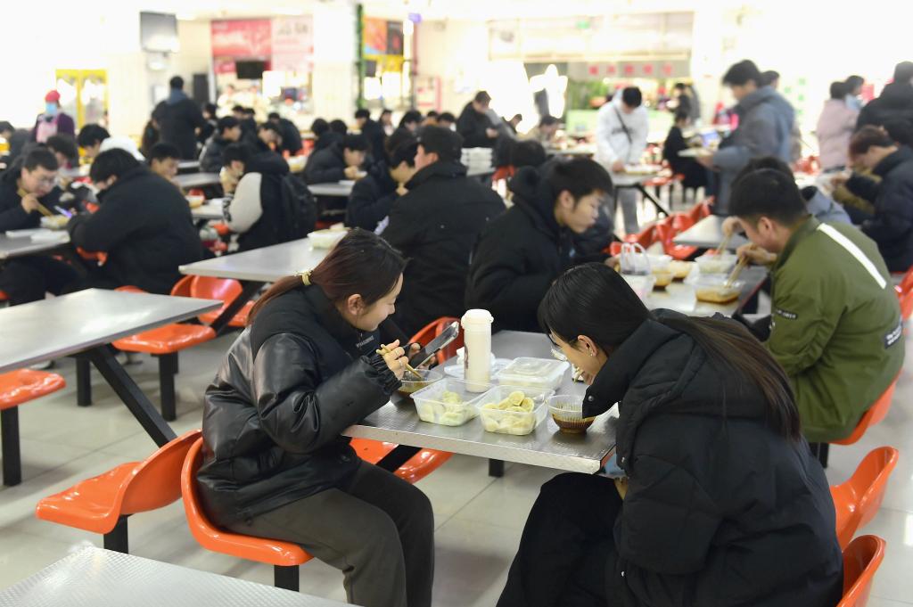 上午十点半至下午一点半期间,学生们拿着彩色用餐券,错峰到所在校区餐厅品尝美味饺子。学校领导们也相继来到三校区餐厅,与师生一起吃饺子、过冬至,并与师生亲切交谈,勉励同学们要找准定位,明确成长阶段目标,以奋发有为的学习热情和守正创新的开拓精神,提高专业能力,更好地服务社会。