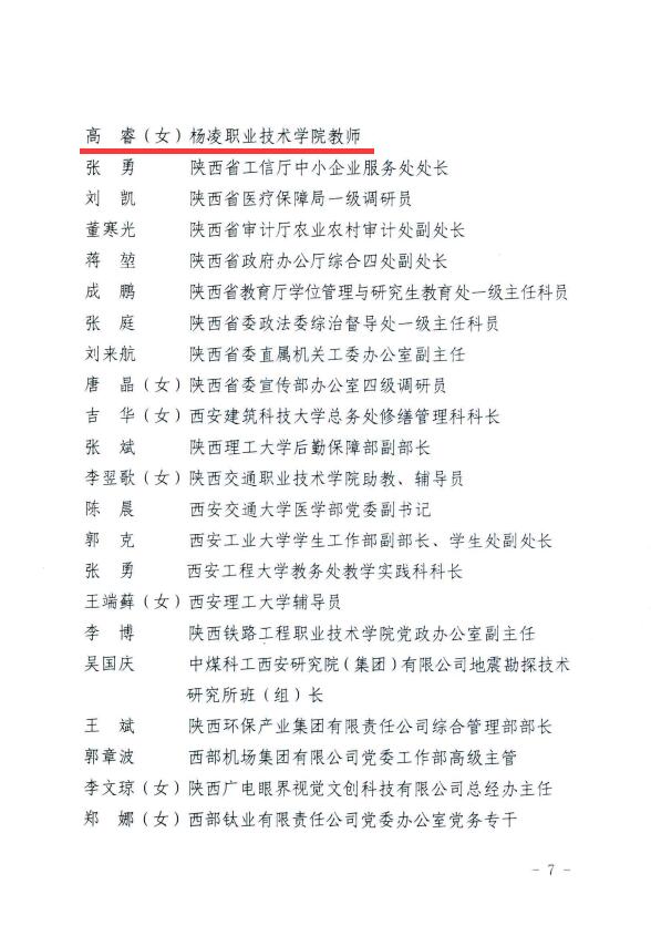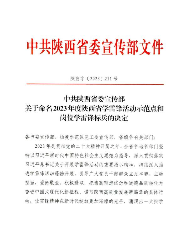 近日,省委宣传部公布2023年度陕西省学雷锋活动示范点和岗位学雷锋标兵名单,350vip浦京集团官网教师高睿荣获“陕西省岗位学雷锋标兵”称号。