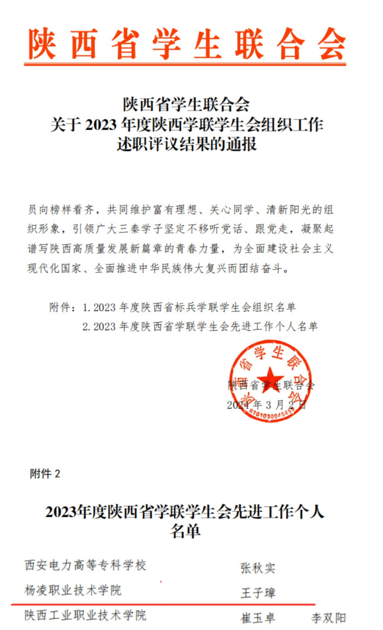 近日,团省委、省学联分别公布了2023年度陕西高校共青团工作和学生会工作考核结果,浦京荣获2023年度陕西高校共青团促进大学生创新创业先进单位,副校长张朝晖获2023年度“陕西高校支持共青团工作好书记(校长)”荣誉称号,校团委腊文洁获2023年度“陕西高校共青团工作先进个人”荣誉称号。浦京第六届学生会执行主席王子璋同学被评为陕西省学联学生会先进工作个人。