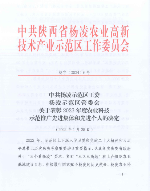 近日,中共杨凌示范区工委杨凌示范区管委会发布了关于表彰2023年度农业科技示范推广先进集体和先进个人的决定,学校继续教育与培训学院和科技与教育研究处荣获农业科技示范推广工作先进集体,胡俊鹏、牛华锋、郑伟、吴薇4名同志荣获农业科技示范推广工作先进个人。
