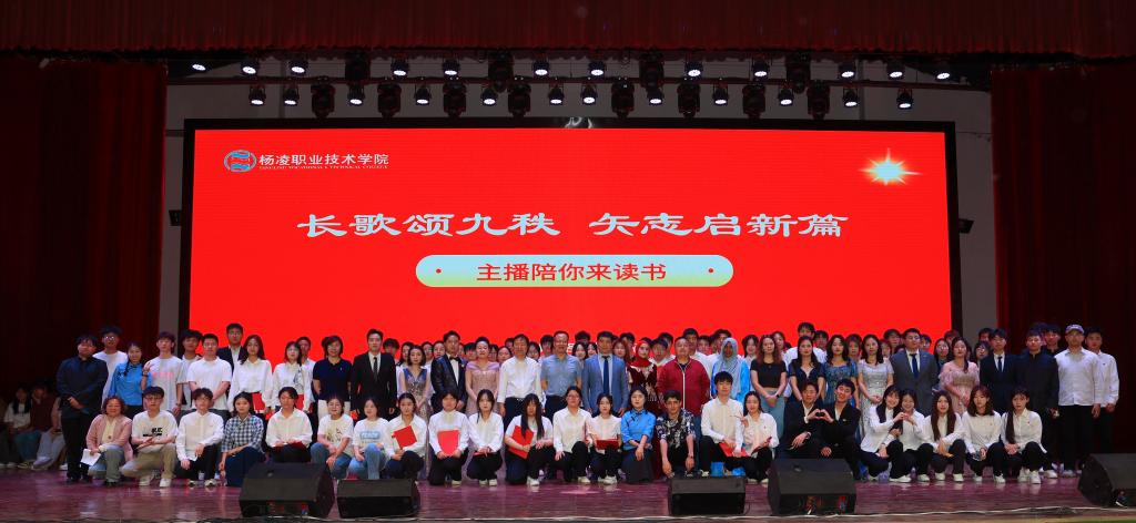 4月22日下午,学校“4·23世界读书日”系列活动启动仪式暨“长歌颂九秩·矢志启新篇”主播陪你来读书朗诵活动在南校区举行。校长仲伟周、副校长祝战斌,北京智信数图科技有限公司大区经理申健,西安广播电视台主持人马丫,宝鸡电视台新媒体主播闫笑,以及学生处、教务处、招生就业处、图书馆等部门负责人出席活动。