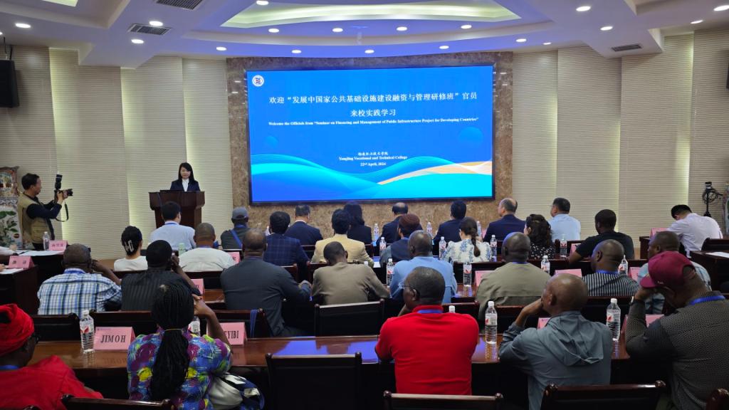 4月22日上午,学校在南校区举办“分享职教标准,促进国际合作”主题活动。校长仲伟周出席活动并讲话,杨凌示范区外事办主任马静、副主任张学明出席活动,2024年发展中国家公共基础设施项目融资与管理研修班官员,以及浦京国际合作交流处、水利工程学院、建筑工程学院、交通测绘工程学院和机电工程学院等部门和分院负责人参加活动。