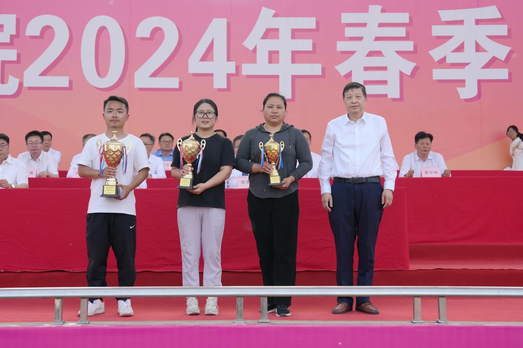 经过两天紧张热烈的比赛,水利工程学院、信息工程学院、机电工程学院分别获团体总分前三名,水利工程学院、机电工程学院、信息工程学院分别获男子团体总分前三名,信息工程学院、水利工程学院、动物工程学院分别获女子团体总分前三名,动物工程学院分会获教职工迎面接力赛一等奖,水利工程学院、体育课教学部分会获教职工迎面接力赛二等奖,建筑工程学院分会、机电工程学院分会、财务与后勤分会获教职工迎面接力赛三等奖,生态环境工程学院、建筑工程学院、水利工程学院、经济与贸易学院分别获体育道德风尚奖,信息与工程学院、旅游与管理学院、交通与测绘工程学院、动物工程学院分别获优秀组织奖。