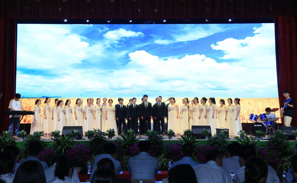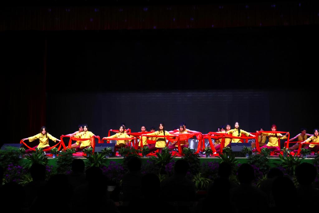 表彰结束后,由大学生艺术团和11个二级学院选送的文艺汇演节目轮番登台。充满动感、青春活力的舞蹈《一起向未来》点燃全场,古典舞《清风徐来》、情景朗诵《青年志》、歌曲《不忘初心》等10余个节目精彩纷呈,为现场师生带来了一场视听盛宴,赢得了阵阵掌声。