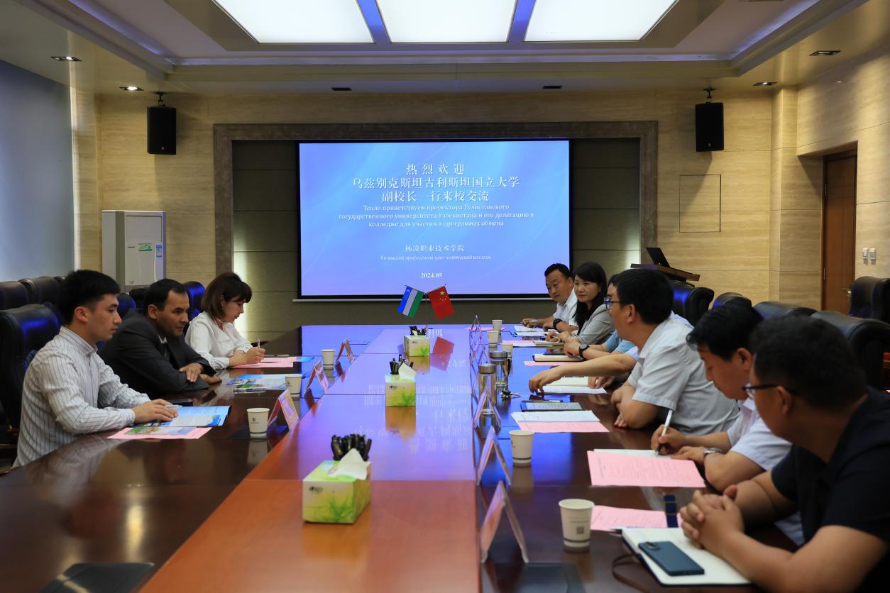 在浦京交流访问期间,图尔迪巴耶夫一行参观了校史馆,以及水利工程学院、建筑工程学院、交通与测绘工程学院、生物工程学院、生态环境工程学院、动物工程学院、经济与贸易学院、旅游与管理学院教学设施和实训条件,并与相关二级学院负责人和专业教师进行了专业标准和技能标准的研讨交流。图尔迪巴耶夫向浦京授予“乌兹别克斯坦古利斯坦国立大学——中国350vip浦京集团官网专业技能培训基地”牌子,并与浦京签订“骨干教师专业技术培训项目”合作协议。仲伟周向古利斯坦国立大学两名教师颁发浦京校外专家聘书。