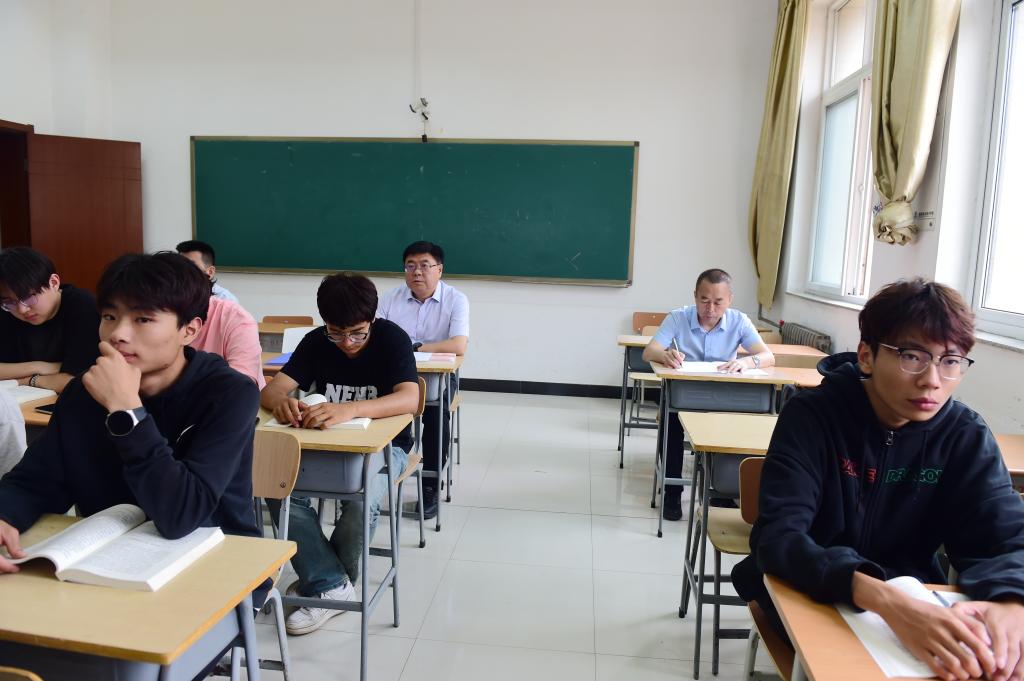 听课过程中,刘瑞明、胡俊鹏凝神专注,仔细观察教师授课情况、课堂纪律和教学效果,以及学生的学习状态、精神风貌,并认真做好听课记录。