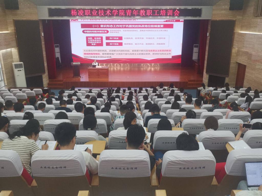 6月7日下午,学校举办青年教职工培训会,邀请马克思主义学院郭雄伟副教授作专题报告。200余名青年教职工参加培训。