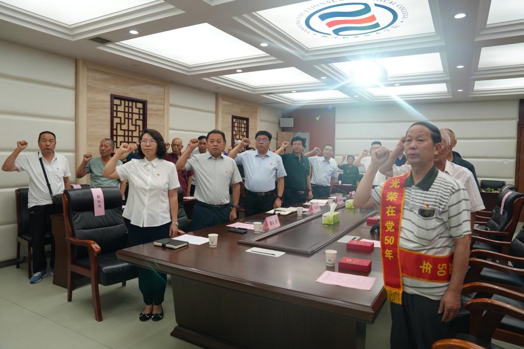 为庆祝中国共产党成立103周年,7月1日上午,学校举行“光荣在党50年”纪念章颁发仪式。党委副书记刘瑞明, 党委委员、组织部部长田争运,党委委员、宣传部部长裴红波出席活动。