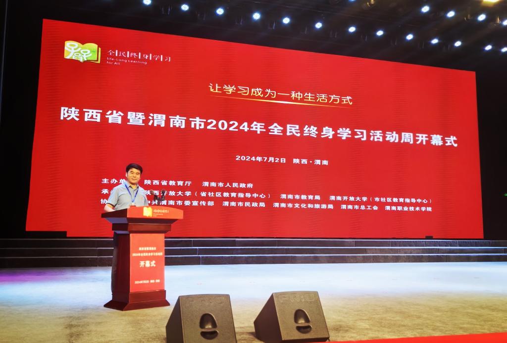 7月2日,以“让学习成为一种生活方式”为主题的陕西省暨渭南市2024年全民终身学习活动周开幕式在渭南市举行。浦京《“农民吹哨 专家报到”终身教育促振兴》国省两级终身学习品牌项目参与展播交流。