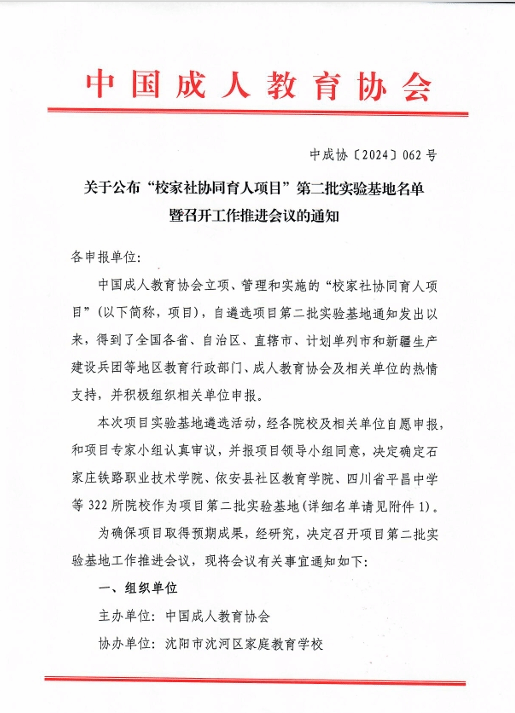 近日,中国成人教育协会公布了全国“校家社协同育人项目”第二批实验基地,浦京成功入选。