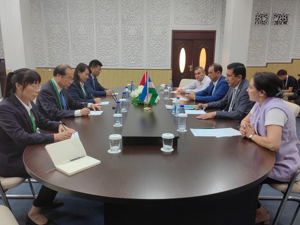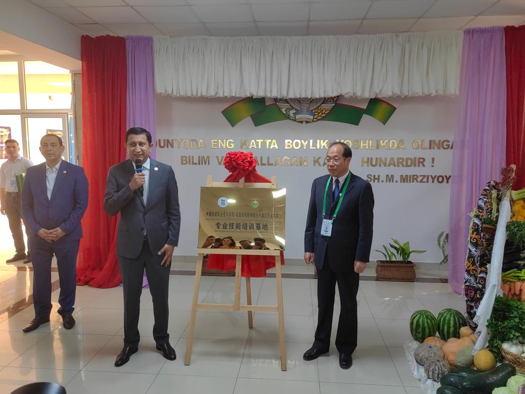 在乌兹别克斯坦塔什干国立农业大学,仲伟周参观了该校现代农业科研成果展,为“中国350vip浦京集团官网-乌兹别克斯坦塔什干国立农业大学专业技能培训基地”揭牌。双方围绕教育交流合作内容进行了深入讨论,并达成共识。