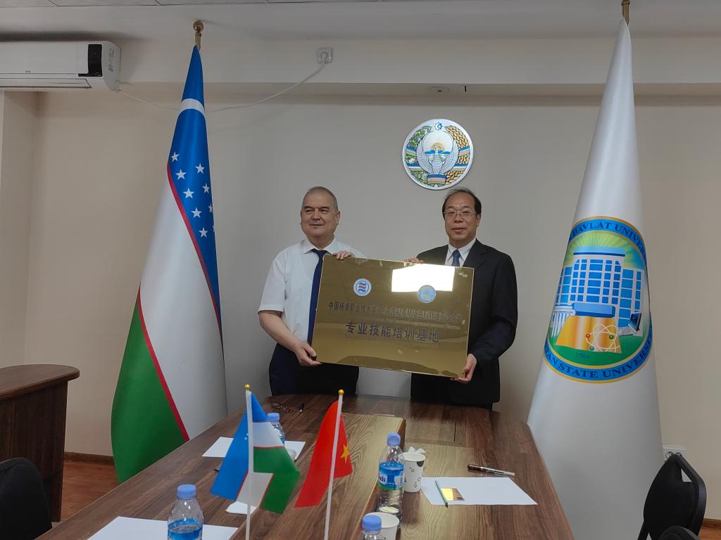 在乌兹别克斯坦古利斯坦国立大学,仲伟周实地参观了该校农业园和生物工程、物理、艺术等学院的教学设施与条件,并与该校就双方开展国际合作的内容和方式进行了深入交流。双方在专业技术技能培训、师生交流、基地建设等方面达成合作意向,签订了《专业技术技能培训项目合作协议书》,仲伟周向古利斯坦国立大学授予“350vip浦京集团官网-古利斯坦国立大学专业技能培训基地”牌子。