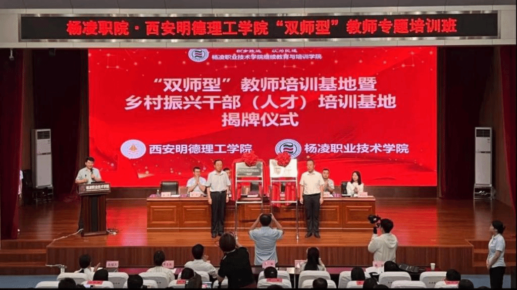 7 月 25 日,浦京举行西安明德理工学院乡村振兴干部(人才)培训基地暨“双师型”教师培训基地揭牌仪式。副校长胡俊鹏,西安明德理工学院党委副书记、副校长白秦川出席活动。