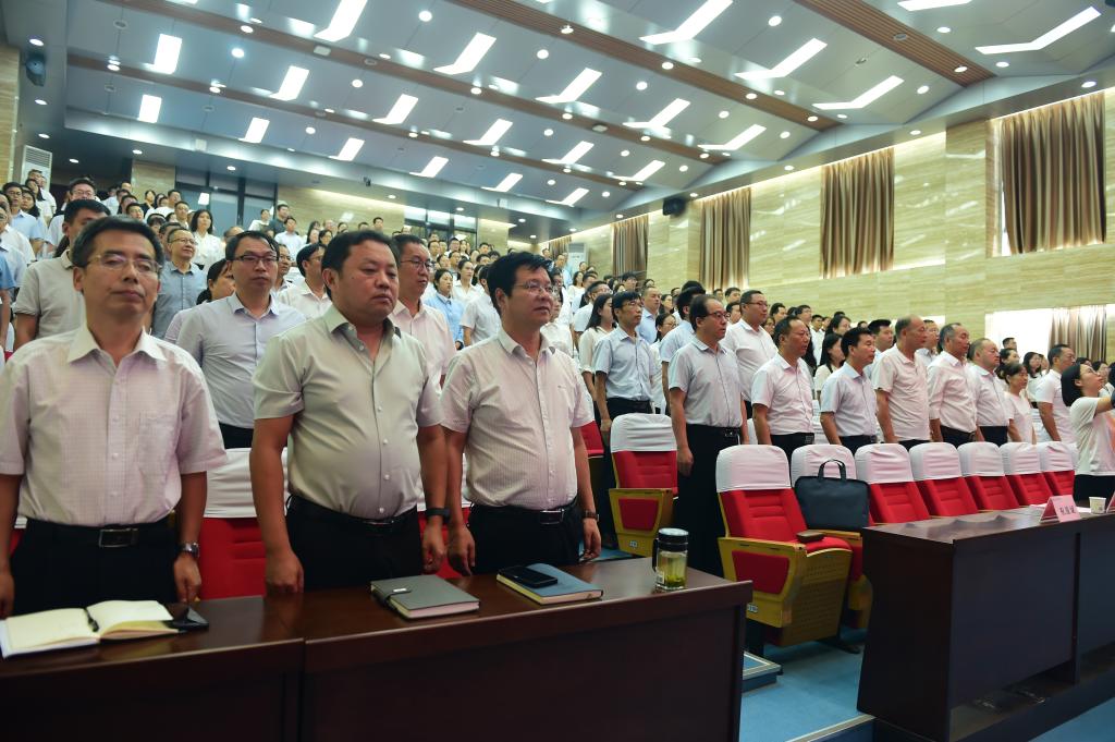 9月13日下午,学校贯彻落实全国教育大会精神暨教师表彰大会在南校区思辨堂举行。党委书记韩明军出席会议并讲话,校长仲伟周,党委副书记刘瑞明,党委副书记、纪委书记王勇胜,副校长祝战斌、胡俊鹏出席大会。会议由校长仲伟周主持。