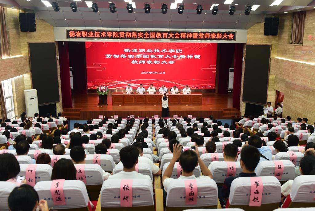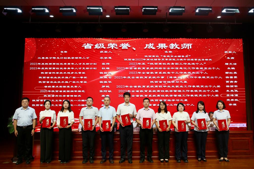 韩明军在讲话中,代表学校党委向全体教职工致以诚挚的问候,向老师们的辛勤付出和努力工作表示最崇高的敬意,向受到表彰的教师们表示热烈祝贺,并介绍了一年来学校取得的一系列标志性成果和显著发展成就。他指出,习近平总书记在全国教育大会上的重要讲话,为新时代广大教师的职业追求指明了方向、提供了根本遵循。他强调,作为教师,一是要守初心、担使命,做从教报国的践行者;二是要树品行、提能力,做立德树人的大先生;三是要抓教书、重育人,做学生成长成才的引路人;四是要挑重担、勇向前,做学校发展的推动者。希望广大教师认真学习贯彻落实全国教育大会精神,不忘初心、不辱使命,自觉维护学校形象和利益,在杨凌职院这个大舞台上,继往开来、不懈奋斗,奋力书写当代杨职人躬耕教坛的精彩答卷,努力开创学校事业发展的崭新篇章。