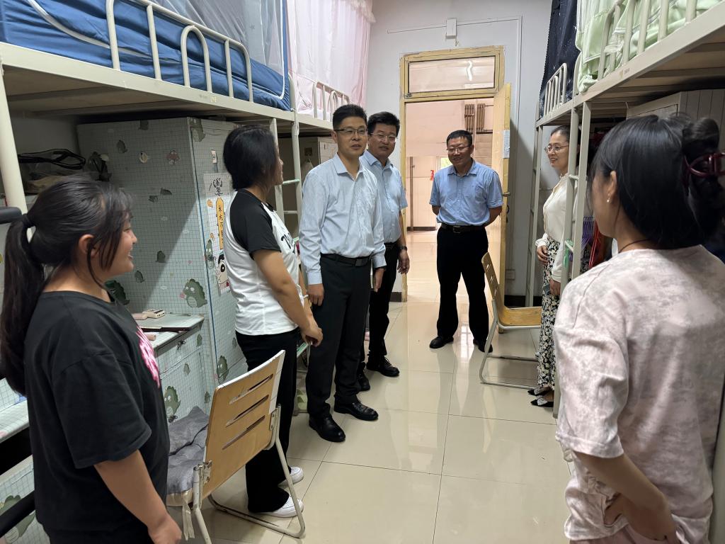 程晓盈一行前往学生宿舍,详细了解了学生的家庭状况和入学后的感受等,并与学生进行座谈交流。程晓盈向学生们介绍了两院合作办学的历史背景和发展历程,并叮嘱学生要遵守校纪校规,认真学习专业知识,做到学有所思、学有所悟。学生代表们就学习环境和生活条件进行了积极发言和交流。