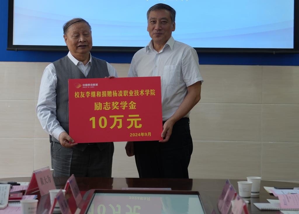 李继和是学校畜牧兽医专业毕业生,现任中国原点新城董事长、陕西省家居业商会名誉会长。为庆祝学校建校90周年,李继和特向母校捐赠人民币10万元,设立励志奖学金。