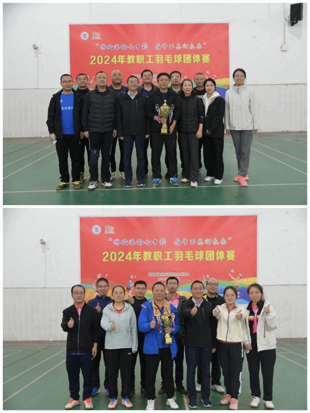 比赛采用小组循环赛制,确保每位参赛者都能充分展示自己的羽毛球技艺。赛场上,各队精心布局,队员间默契无间,救球果断、扣杀凌厉,每一次挥拍都闪耀着团队智慧与力量的光芒,赢得了在场观众的阵阵喝彩与雷鸣般的掌声。决赛阶段,更是精彩纷呈,队员们以顽强拼搏、奋勇争先的体育精神,将比赛推向了高潮。经过两日的激烈角逐,财务与后勤分会获得冠军,机电工程学院分会获得亚军,信息工程学院分会和体育课教学部分会并列获得季军。