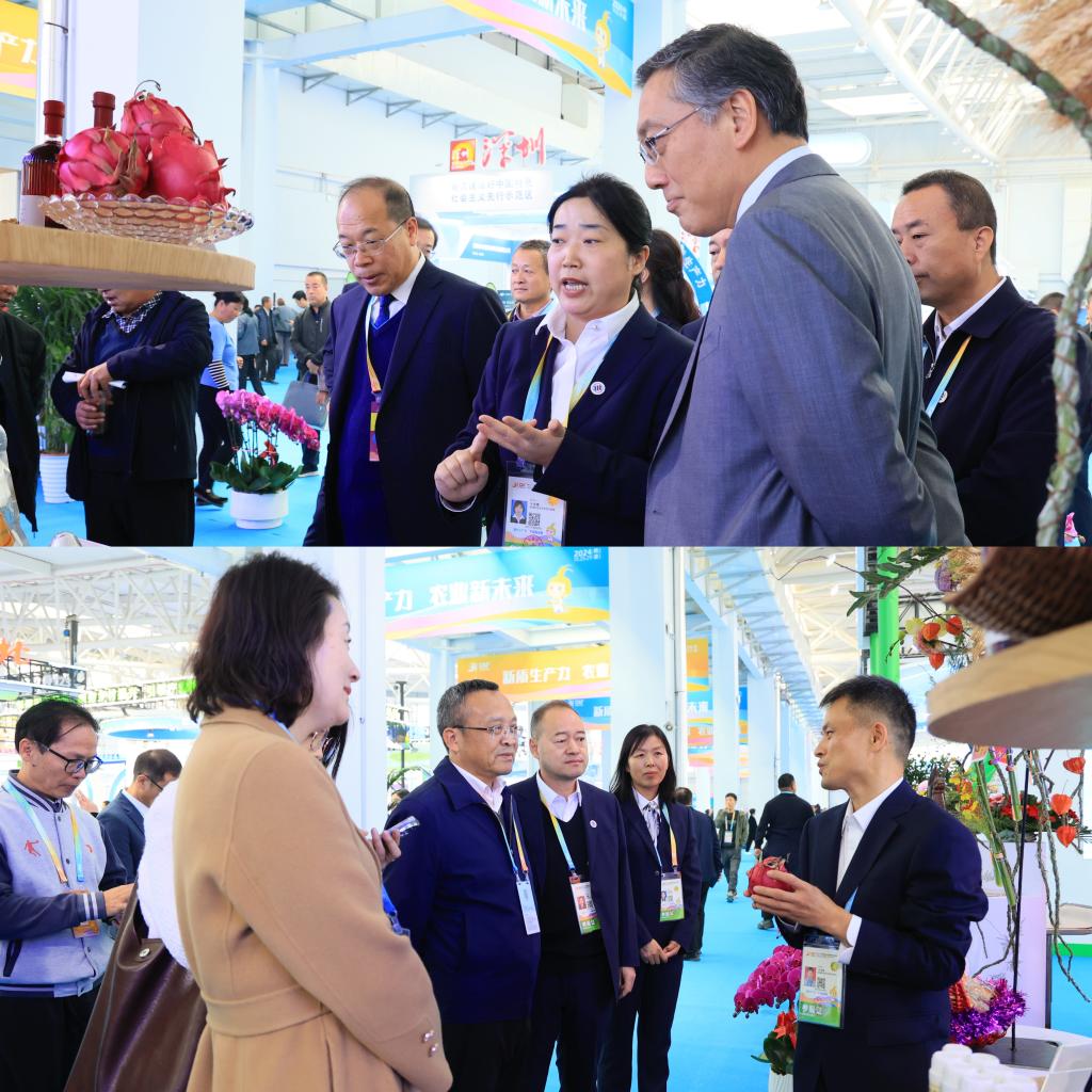 展会期间,陕西省人民政府党组成员、副省长、杨凌示范区管委会主任窦敬丽,陕西省人民政府党组成员、副省长陈春江,科技部农村科技司副司长、一级巡视员蒋丹平,农业农村部科教司二级巡视员窦鹏辉,广西壮族自治区农业农村厅副厅长唐咸来,杨凌示范区党工委书记史高领,杨凌示范区党工委副书记、管委会常务副主任何玲,杨凌示范区党工委委员、管委会副主任刘仲山莅临学校展位参观指导。