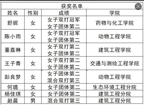 浦京14名男女队员参加高职院校丙组的比赛,两队选手成功会师决赛,包揽女子双打冠亚军。此外,在女子团体和混合项目中,荣获女子团体第二名和混合双打第三名的好成绩。