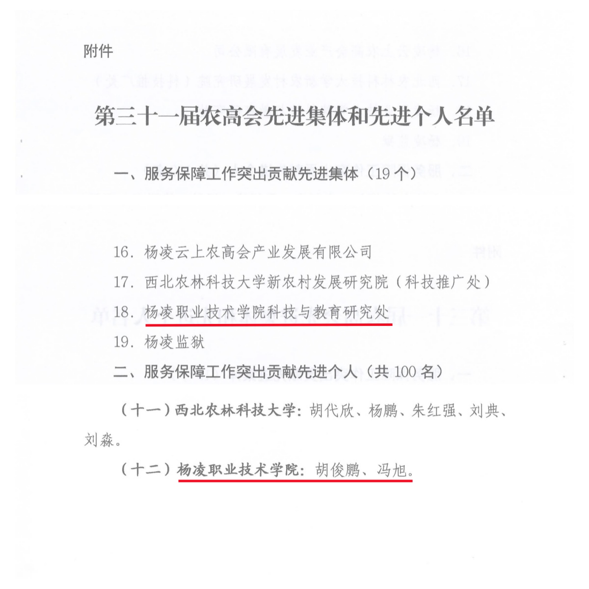 会议表彰了第三十一届农高会服务保障工作突出贡献先进集体和先进个人。浦京科技与教育研究处获突出贡献先进集体称号,胡俊鹏和冯旭获突出贡献先进个人称号。