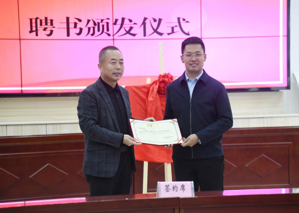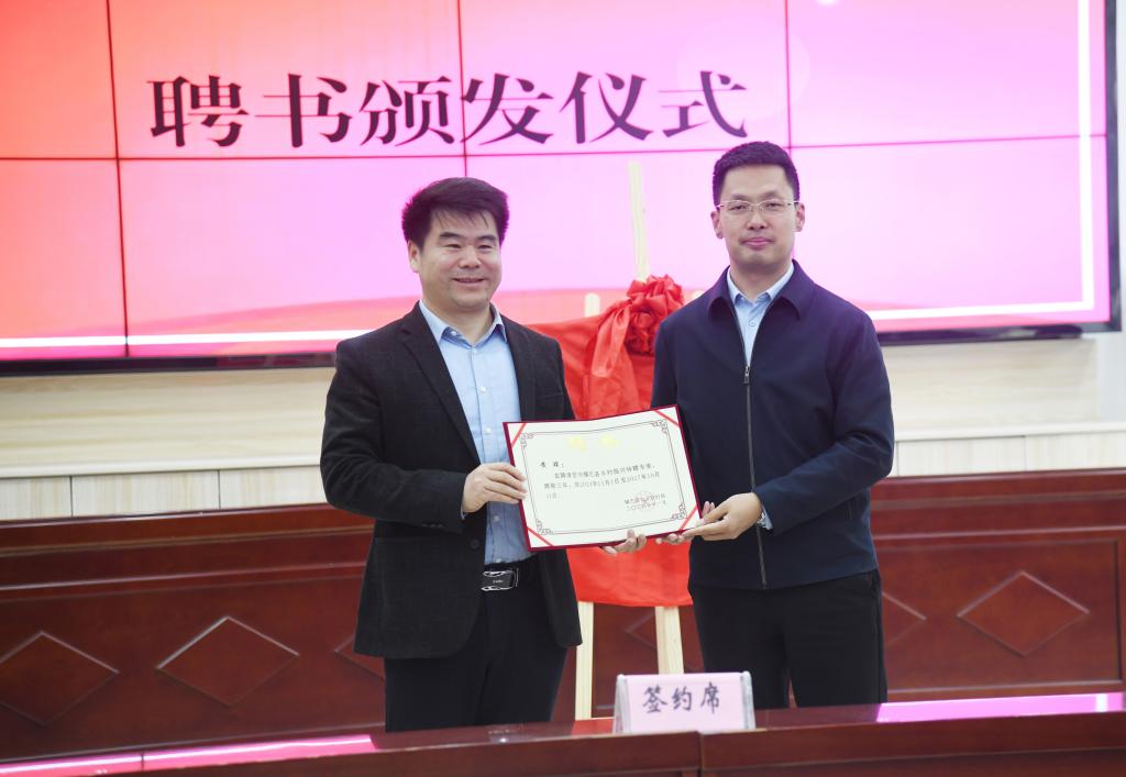 党江平为学校的四位专家代表颁发了乡村振兴特聘专家聘书。黄璞与张梓媛共同签署了校政合作框架协议,明确了双方在人才培养、产业发展、科技创新等方面的合作方向。