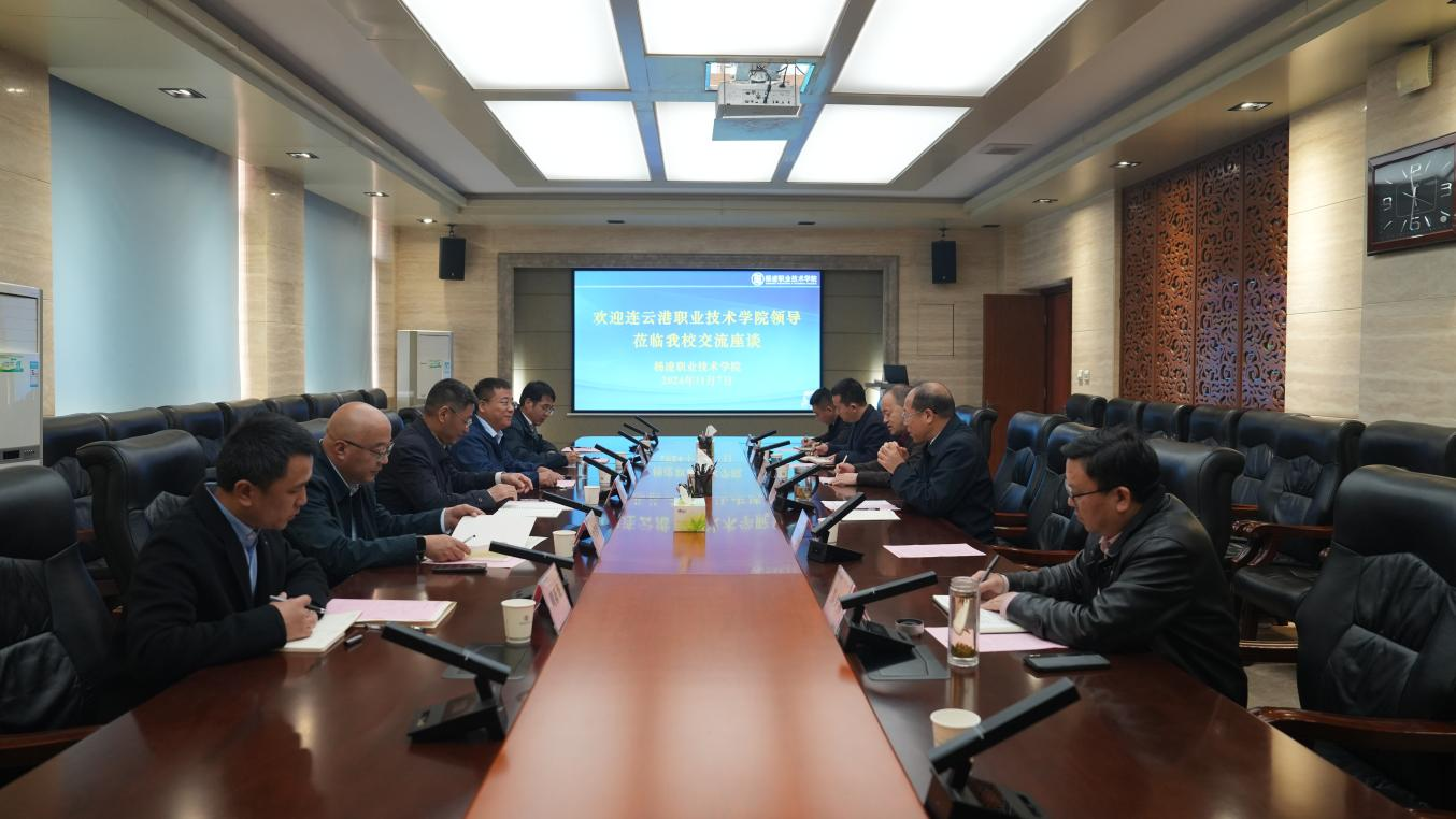 11月7日上午,连云港职业技术学院党委书记刘江船一行来校调研交流。校长仲伟周出席座谈会并陪同考察。