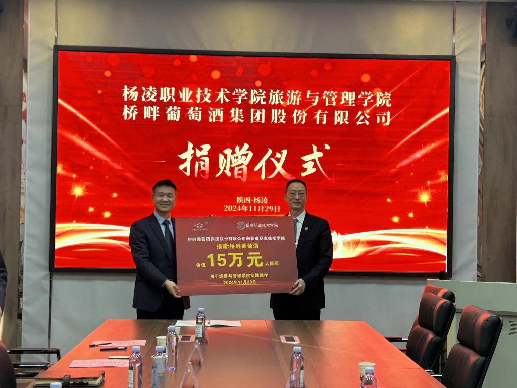 11月29日,学校举行校企合作捐赠仪式。党委副书记刘瑞明,桥畔葡萄酒集团股份有限公司总经理、西农校友黄建清出席仪式。旅游与管理学院负责人和教师代表参加。