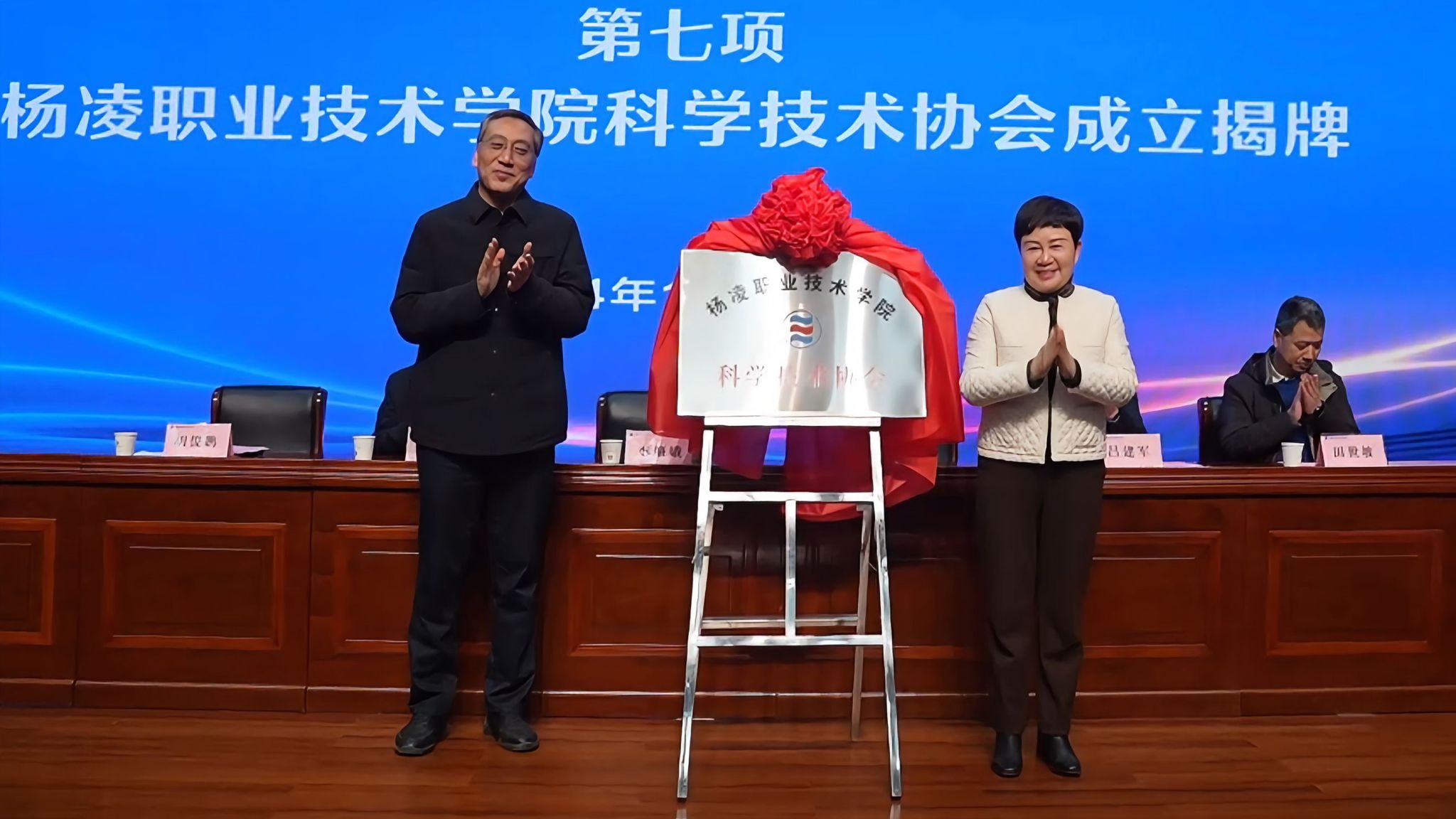 李肇娥和韩明军共同为350vip浦京集团官网科学技术协会揭牌