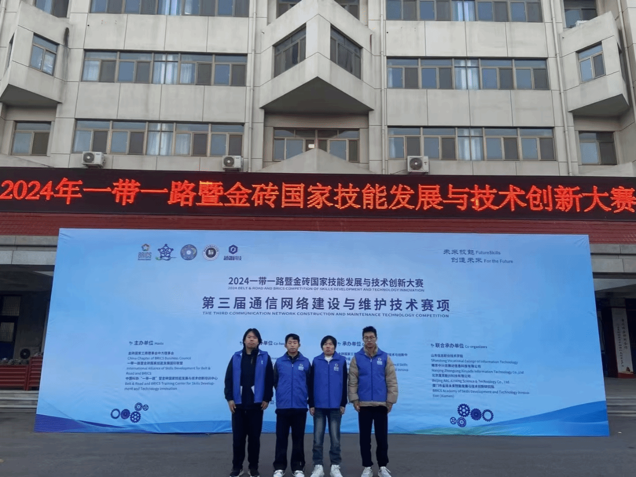 12月7日至8日,2024一带一路暨金砖国家技能发展与技术创新大赛通信网络建设与维护技术赛项国内赛决赛在山东潍坊开赛。本次大赛共有来自全国各地的110支队伍220余名选手参赛。浦京信息工程学院樊勇杰、南疆、王泉龙、杨申四位同学参赛,获决赛三等奖。