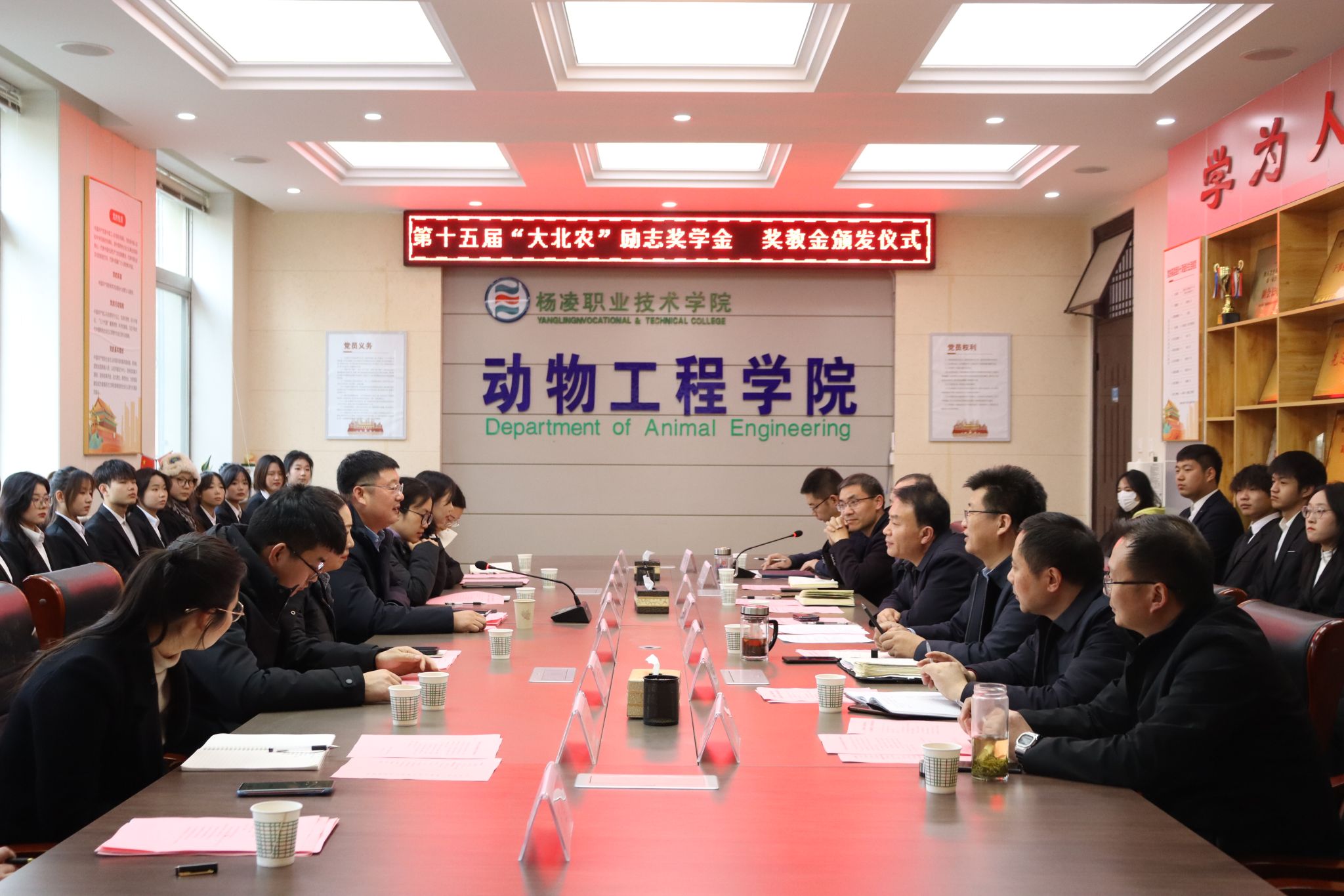 12月20日,学校举行“大北农”励志奖学金和奖教金颁发仪式。党委副书记、纪委书记王勇胜,大北农集团陕西区总裁宋安石出席仪式。动物工程学院负责人、教研室主任和获奖师生代表共40余人参加仪式。