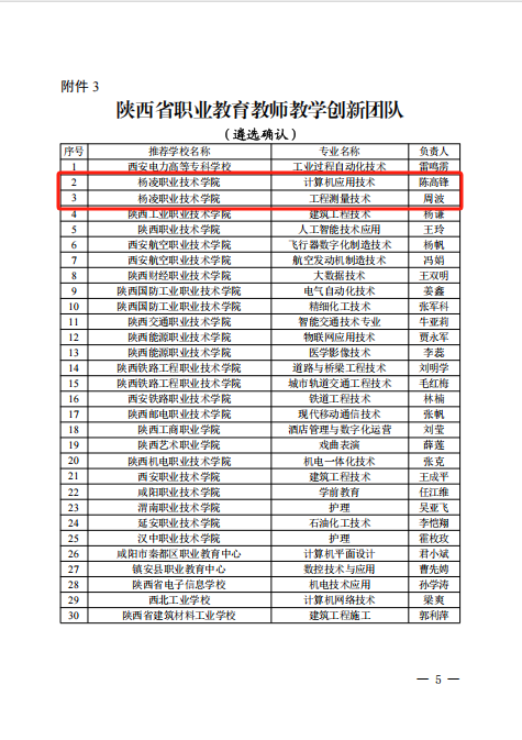 近日,省教育厅公布了省级职业教育教师教学创新团队建设名单。浦京衣学慧负责的园林技术、王燕负责的农业生物技术、蒋平江负责的水利工程、陈高锋负责的计算机应用技术和周波负责的工程测量技术等5个专业团队成功入选。