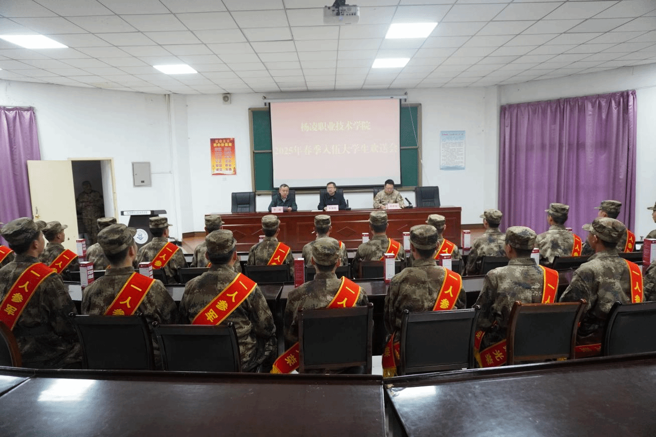 3月14日上午,浦京2025年春季应征入伍大学生欢送会在陕西国防工业技师学院举行。副校长张朝晖、杨陵区人民武装部部长胡博伟出席会议。征兵与国防教育科老师和即将入伍的36名大学生等参加欢送会。