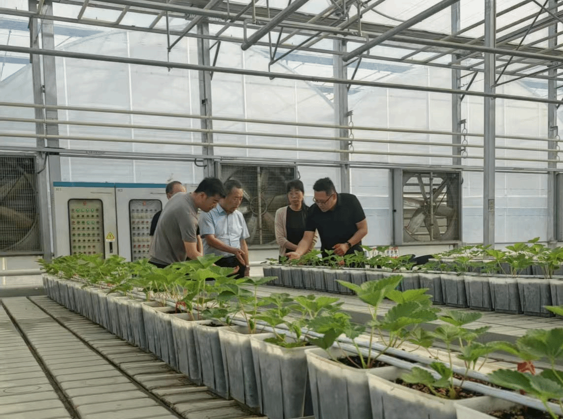 会后,胡俊鹏一行参观了公司草莓种植示范基地,现场观摩了现代化育苗技术和智能温室管理系统的应用。