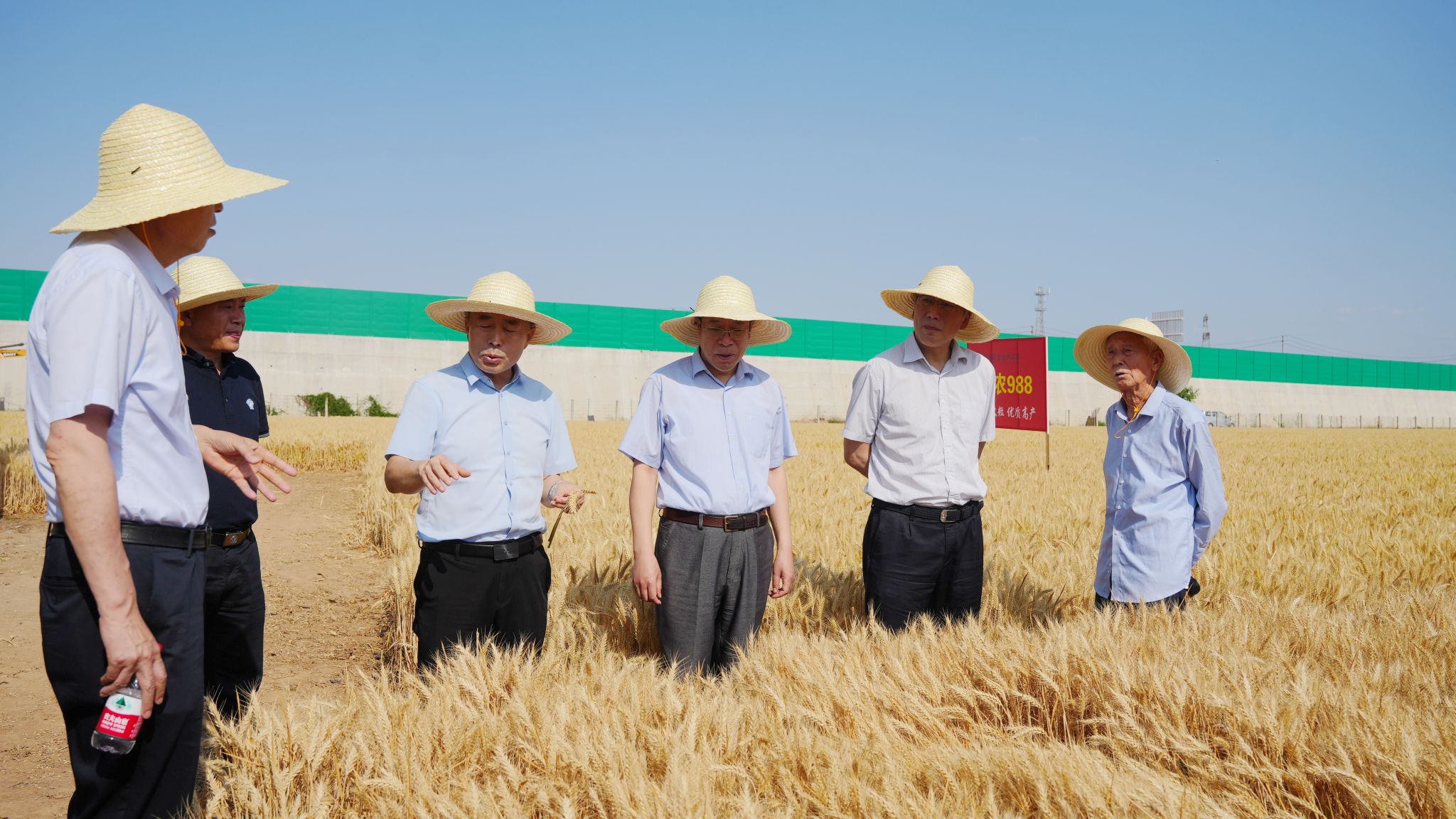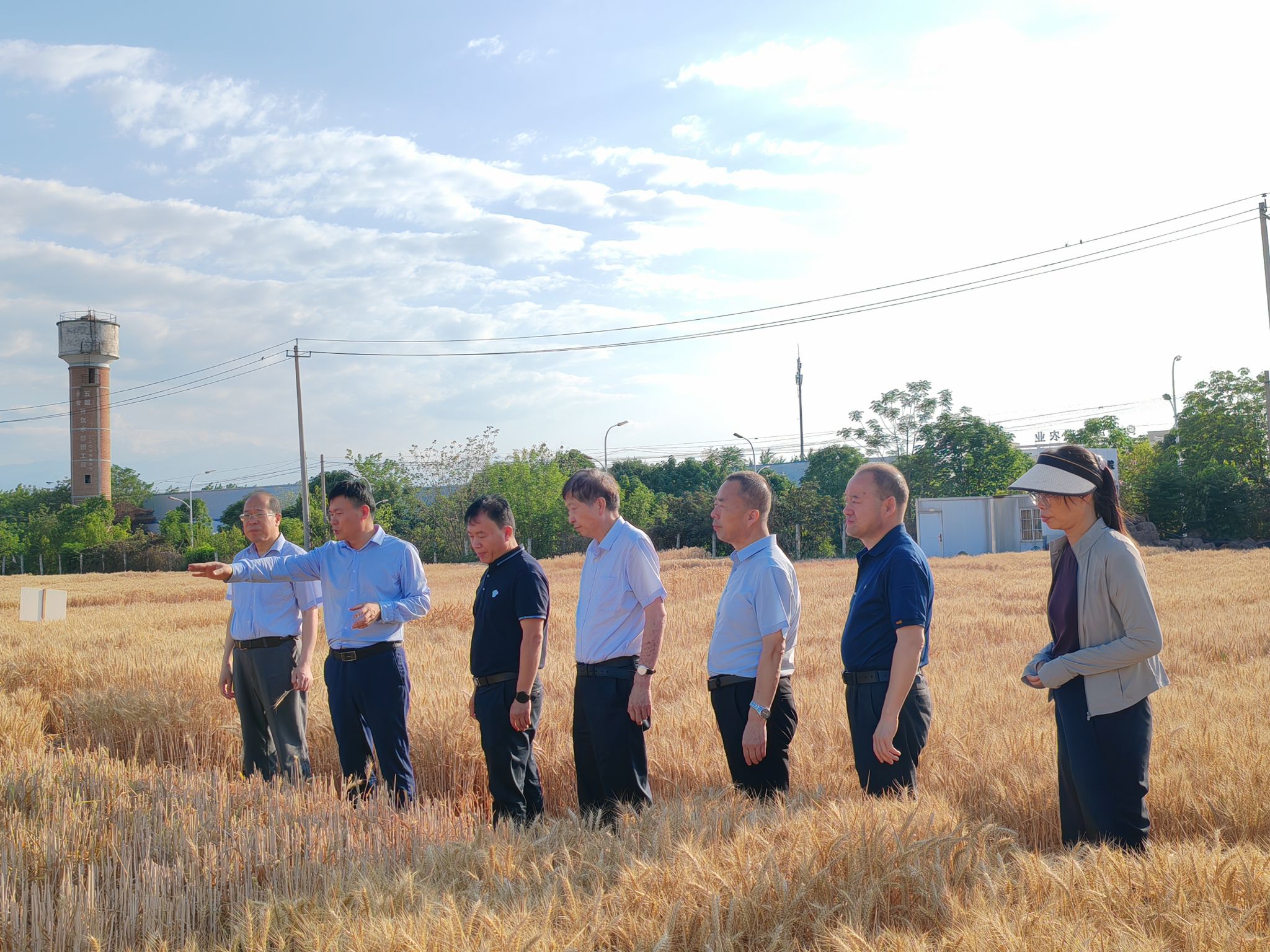 小满节气过后,冬小麦即将进入完熟期,麦穗由青变黄。豆村教学实验农场麦浪翻滚,满目金黄,一幅小麦丰收的画卷徐徐展开。在赵瑜研究员的带领下,学校领导一行走进麦田,参观大穗大粒优质高产小麦品种“武农981”“武农988”表现情况和小麦新品种繁育情况。赵瑜小麦研究所试验田里的小麦壮硕挺拔、颗粒饱满,散发出阵阵麦香。望着眼前一片片根粗苗壮、穗大粒满的小麦,大家难掩心中喜悦,一边听赵瑜研究员介绍小麦的生长条件和特性,一边询问小麦收成、农民收益情况。在350vip浦京集团官网小麦育种产学研基地,学校领导一行现场观摩了王稳江教授培育的“职院15”、“职院171”等小麦新品种田间生长情况。