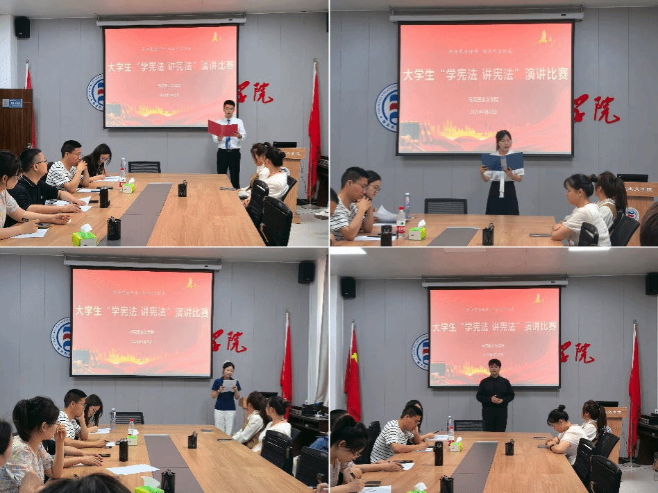 为深入学习贯彻习近平法治思想,全面落实宪法宣传教育工作要求,进一步增强广大学生的宪法意识和法治观念,营造良好的校园法治文化氛围,5月22日晚,马克思主义学院举办大学生“学宪法 讲宪法”演讲比赛。