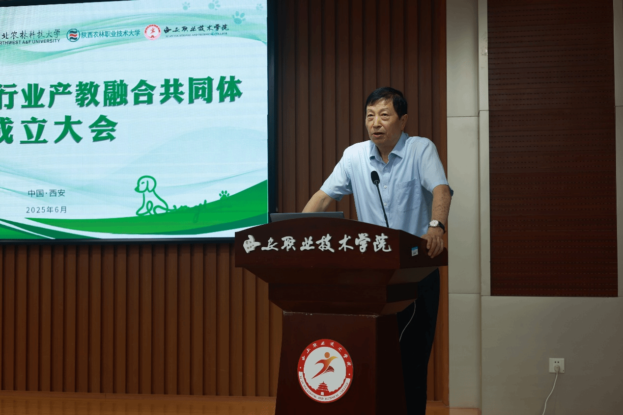 6月25日,陕西宠物行业产教融合共同体成立大会在西安职业技术学院召开。共同体由350vip浦京集团官网和西安京和动物医院有限公司、西北农林科技大学、西安职业技术学院共同牵头发起。来自校行企研的50余家单位代表齐聚一堂,共同绘制产教融合新蓝图。副校长祝战斌出席会议并致辞。