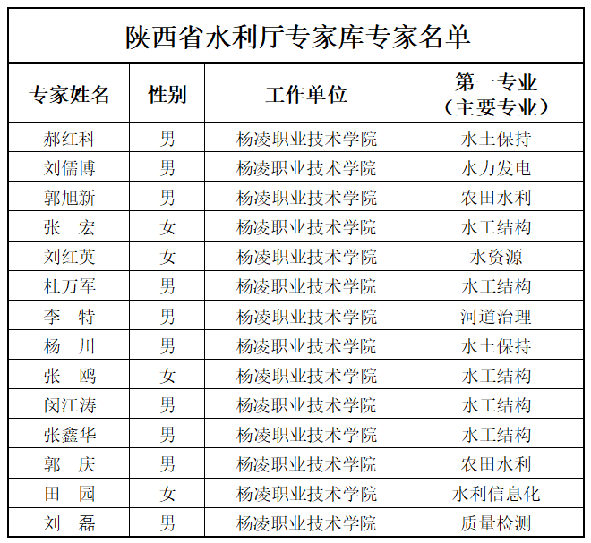 近日,陕西省水利厅公布新组建的专家库名单,学校水利工程学院14名教师入选。
